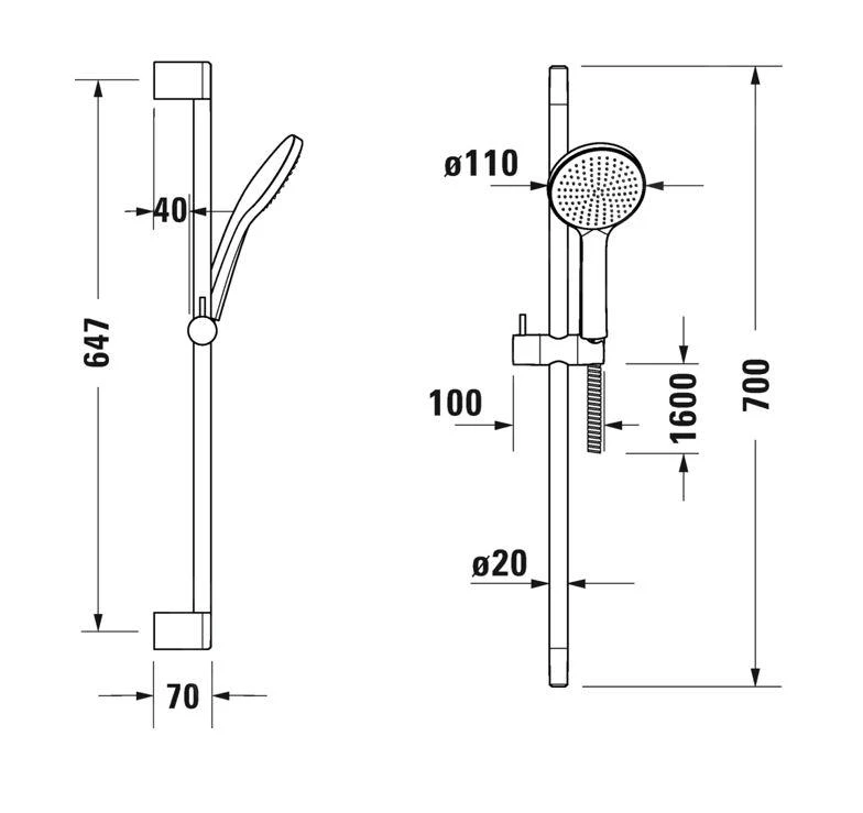 - Mit Handbrause 110 mm