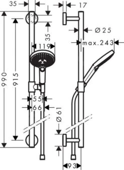 Hansgrohe Raindance Select E – Brausegarnitur 150, 3 Strahlen, Weiß / Verchromt 27856400