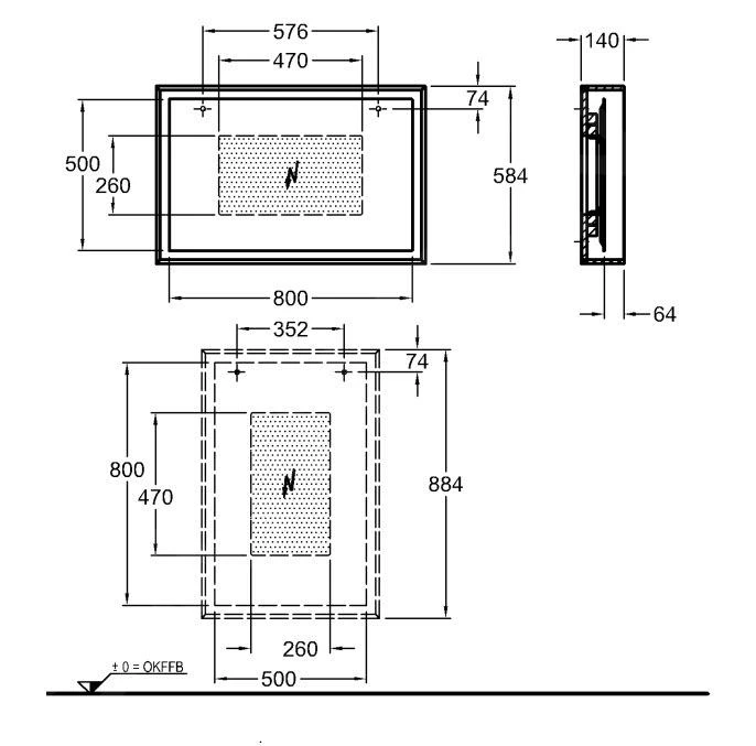 - Abmessung: 88,4 x 58,4 x 14 cm (BxHxT)