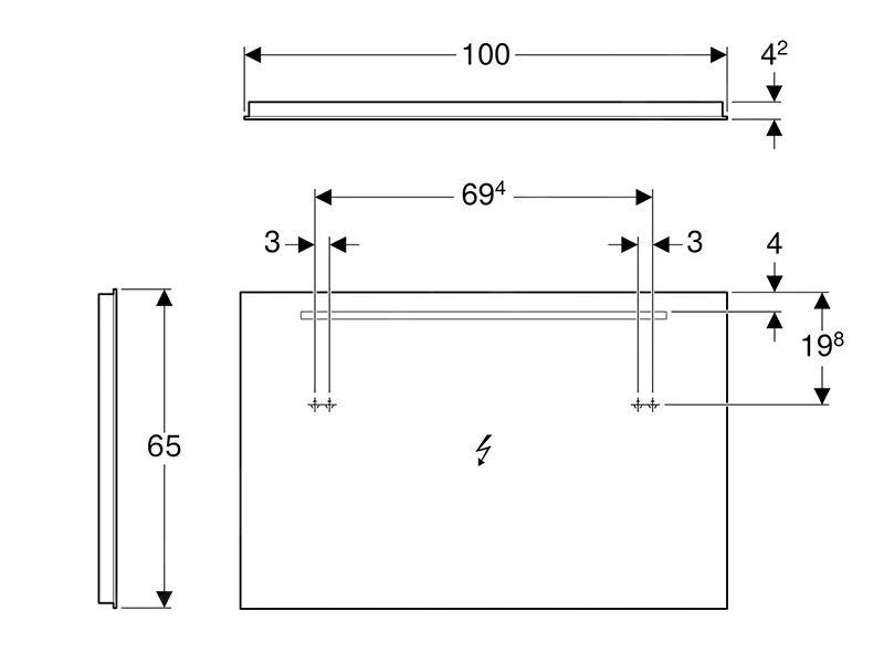 - Gesamtabmessungen: 1000 x 650 x 42 mm