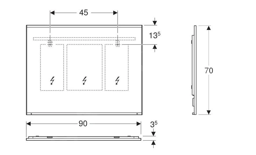 - Gesamtabmessungen: 900 x 700 x 35 mm