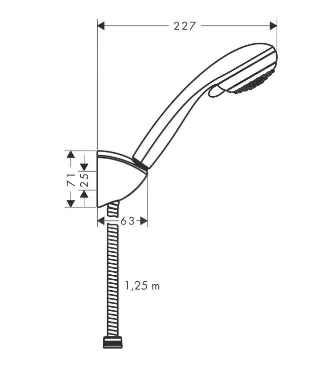 - Besteht aus: Handbrause, Brausehalter, Brauseschlauch
