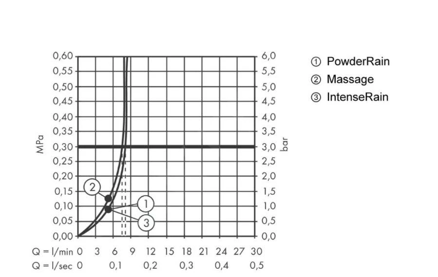 - Duschstrahl: PowderRain, IntenseRain, Massagestrahl