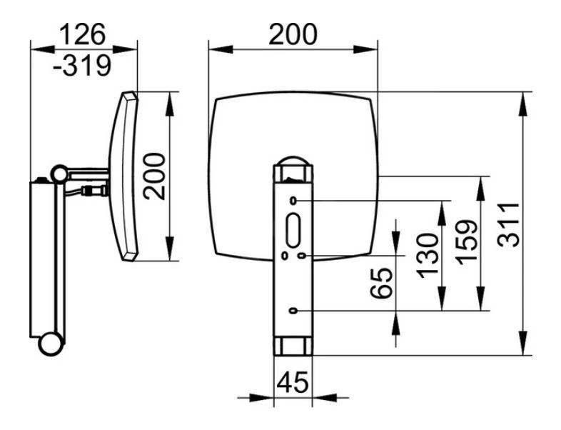 - Abmessungen 200 x 311 x 126-319 mm (B/H/T)
